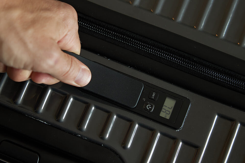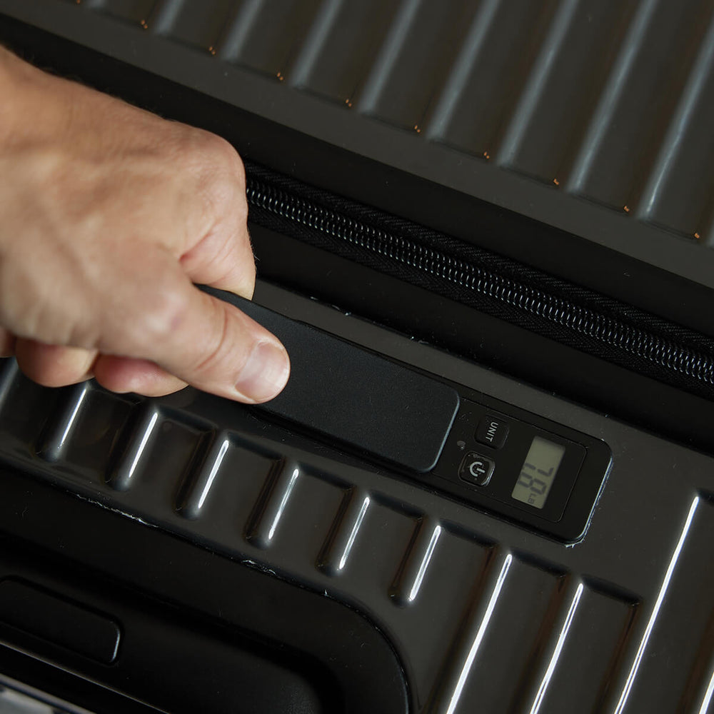 لا مزيد من المفاجآت بسبب الأمتعة ذات الوزن الزائد! يضمن لك الميزان الرقمي المدمج أن تكون ضمن الحدود.